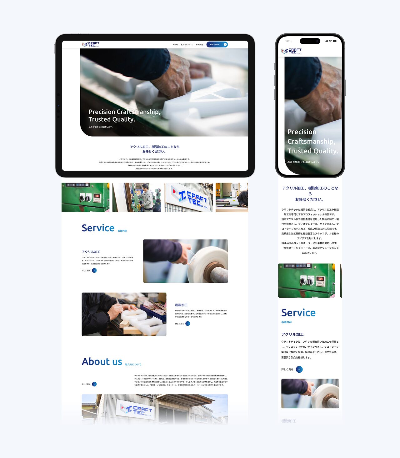 クラフトテック様はコーポレートサイトをお持ちでなかったため、新規でWebサイト制作をいたしました。後継者不足や若手人材の採用強化を背景に、「自社の存在や事業内容を発信する場が必要」と判断され、サイト構築を検討されました。