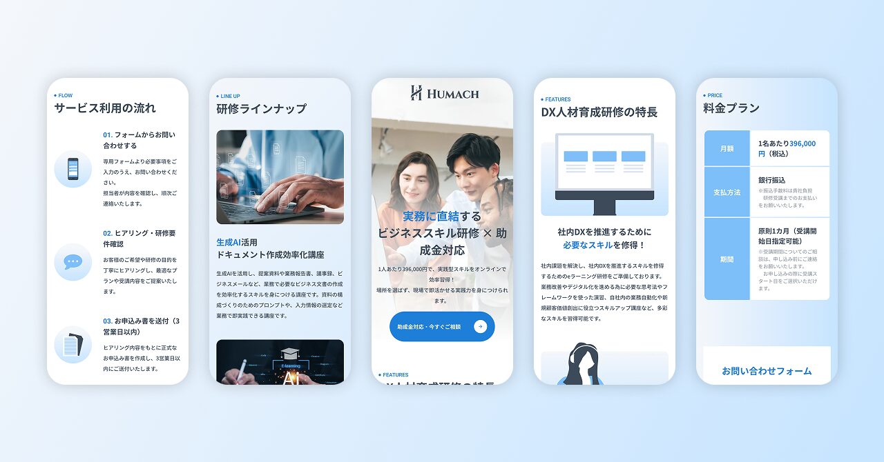 さらに、アニメーションも重要な要素として活用しています。特に、強調したい部分が画面に表示される際に動きをつけることで、視覚的な印象を高め、ユーザーが重要な情報を見逃すことなく自然と目に留まるように工夫しました。TOPページは、各ページへの入り口となるため、アニメーションを使って視線を誘導し、ユーザーが直感的に次のステップへ進めるような構成にしています。
